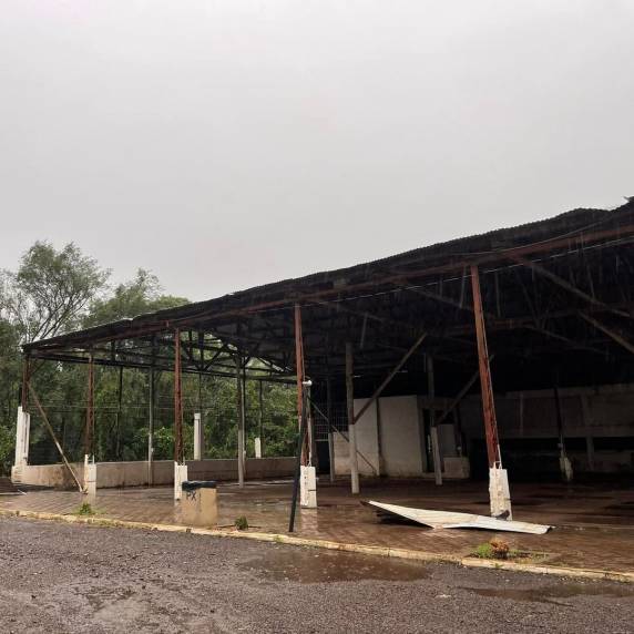 O tradicional pavilhão onde ocorre anualmente a festa de Nossa Senhora de Navegantes e, que poucos meses ocorreu o Festival Gastronômico, teve boa parte de sua cobertura arrancada pela força do vento.