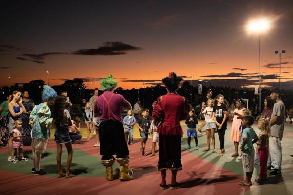 Com performances, teatro, projeção, degustação de produção orgânica e arte circense, evento uniu famílias em noite de cultura e educação ambiental.