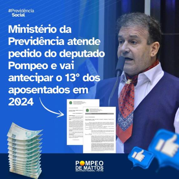 O deputado Pompeo expressou sua satisfação e o sentimento de dever cumprido ao anunciar a resposta positiva do ministério. De acordo com ele, a antecipação do 13º salário vai além de um simples auxílio financeiro; representa um estímulo à economia local em todas as regiões do Brasil, onde os benefícios da Previdência Social são fundamentais para dinamizar o comércio e a produção, além de ser um reconhecimento aos aposentados do Brasil.