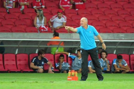 Luiz Felipe Scolari, que à beira do gramado implorava a seus jogadores que marcassem a saída de bola do Inter. Aos poucos, acabou se fazendo ouvir. Com lentidão e sem