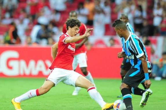 Grêmio, às vezes com dose exagerada. Houve uma primeira arrancada tricolor, um cruzamento de Lincoln que Felipe Bastos colocou de cabeça para fora, mas o Inter manteve o