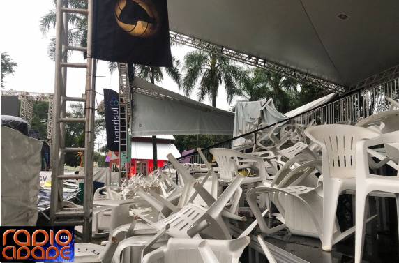 Os estragos também atingiram a Arena de Vôlei, localizada no Centro Histórico da cidade, onde recentemente ocorreu o Circuito Sul-Americano de Vôlei de Praia. As laterais da arena foram atingidas, várias cadeiras plásticas foram jogadas ao solo, formando um amontoado, e a lona de cobertura de uma das arquibancadas foi arrancada.