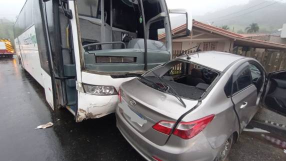 A colisão ocorreu na altura do Km 472, no bairro Guarda, e chegou a mobilizar até equipes do Samu. O motorista do ônibus não se feriu. O teste do bafômetro apontou que ele não estava alcoolizado. Os dois veículos foram recolhidos.