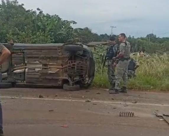 Com o impacto o veículo Celta tombou na rodovia. Quatro pessoas foram presas e droga semelhante à maconha foi encontrada no interior do carro.