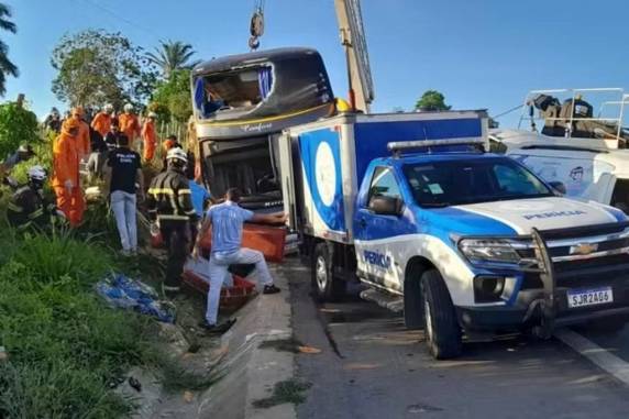 Um ônibus de turismo tombou na BR-101, na cidade de Teixeira de Freitas, no extremo sul da Bahia, na manhã desta quinta-feira (11). O acidente deixou nove pessoas mortas e dezenas feridas, conforme informado pela Polícia Rodoviária Federal (PRF).