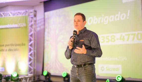 Um momento especial também foi oportunizado pela Cooperativa aos associados, lideranças e imprensa presentes que foi a presença do Presidente do Sicredi e diretor executivo do Centro Administrativo Sicredi (CAS), César Gioda Bochi. Ele trouxe dados nacionais do sistema cooperativo e os relacionou com as experiências, produtos e serviços ofertados pelo Sicredi, destacando o papel estratégico do cooperativismo de crédito no desenvolvimento local.