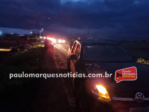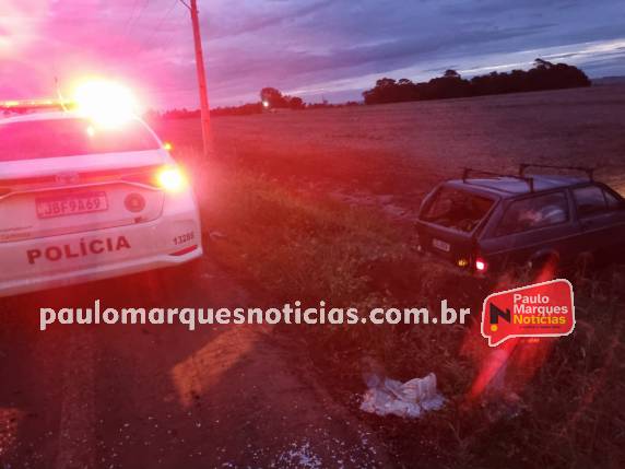 A Parati saiu fora da pista, mas o condutor não ficou ferido. A mulher também escapou ilesa, restando apenas danos materiais.