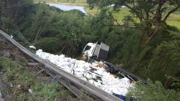 A queda aconteceu após a colisão contra um carro no km 234,9, na região conhecida como Morro dos Cavalos, às 22h. Segundo os socorristas, o motorista, de 28 anos, estava consciente e disse que se afastou do veículo tombado com medo de um possível incêndio.