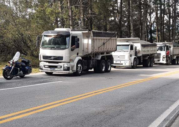 Chamou a atenção dos agentes que todos os veículos estavam transitando em velocidade extremamente reduzida, prejudicando o fluxo nesta região de serra. Os transportadores foram multados e os motoristas somente seguiram viagem após o transbordo da carga excedente de pedras para outros veículos.
