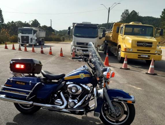 Durante fiscalização de excesso de peso na tarde desta quinta-feira (06), na BR-282 em Rancho Queimado, policiais rodoviários federais flagraram quase 37 toneladas de carga a mais que o permitido em quatro caminhões.
