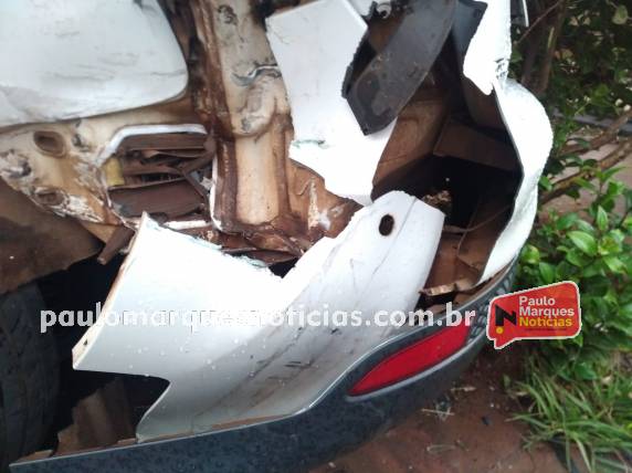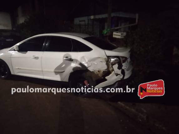 Um automóvel Ford Focus, foi atingido por uma caminhonete no início da madrugada deste sábado (15) na rua Planalto, no bairro Glória em Três de Maio.