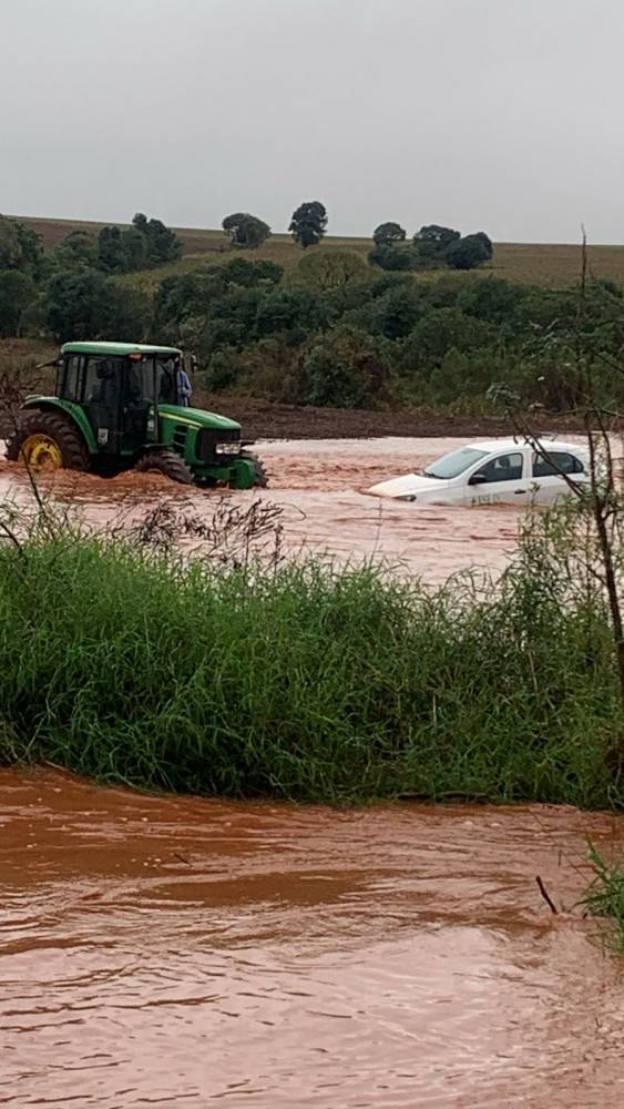 Choveu em poucas horas acima dos 50 milímetros na região, fazendo com o que o Lajeado Paiol saísse do leito. Informações apuradas pela reportagem indicam que o veículo estava indo buscar um paciente no interior do município quando o motorista tentou passar pelo local, não conseguindo. O carro acabou ilhado no meio da correnteza e depois levado para o meio de uma lavoura pela força da água.