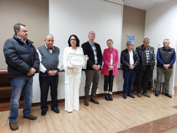 A diretora-geral do Hospital Vida & Saúde e presidente da Federação das Santas Casas e Hospitais Sem Fins Lucrativos do RS, Vanderli de Barros, recebeu nesta sexta-feira (28), a Moção de Congratulações da Câmara de Vereadores de Santa Rosa.