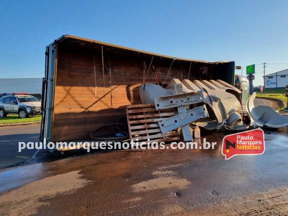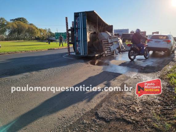 Um caminhão Mercedes Benz de Catuípe, tombou quando contornava o trevo da BR-472 em Três de Maio. O acidente ocorreu por volta das 16h30min, desta segunda-feira (22).
