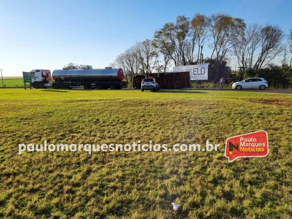 O veículo carregado com um reservatório cheio de água, era conduzido na RS-342, e no momento que fazia o contorno no trevo em direção a Santa Rosa, possivelmente foi desequilibrado pela carga que forçou para o lado direito.