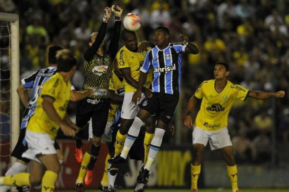 em casa, o Ypiranga não encontrava soluções para reagir. Bem postado, o sistema defensivo do Grêmio se mantinha firme.
