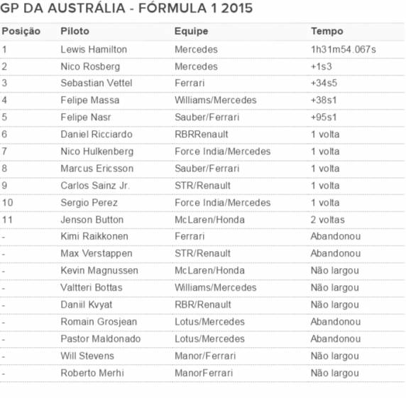 campeão mundial Lewis Hamilton venceu, neste domingo, o GP da Austrália. Nico Rosberg terminou em segundo e garantiu a dobradinha. Mas o grande destaque na corrida de abertura