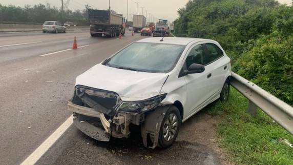 Segundo o motorista do Onix, o reboque se desprendeu e acabou atingindo o Onix, que bateu na Parati. Com o impacto, o motorista da Parati perdeu o controle do veículo e capotou. O condutor e o passageiro foram atendidos pela ambulância da CCR Viasul, empresa que administra a rodovia. Com lesões leves, foram encaminhadas para atendimento médico.