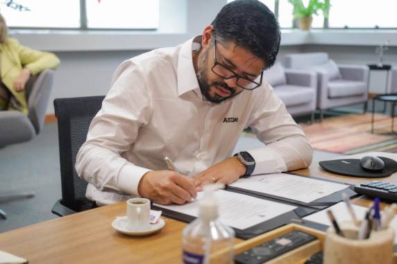 Também participaram da assinatura a coordenadora do Gabinete de Estudos Climáticos, o GabClima, Sílvia Cappelli, a chefe da Gabinete da PGJ, Raquel Isotton, o diretor de operações da AECOM, Luiz Villas Bôas, e a gerente de projetos da empresa Franciele Fedrizzi.