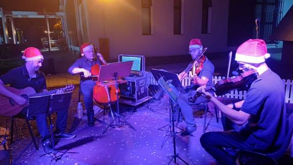 O quarteto de cordas, sob a regência do experiente músico e maestro Cléverton Ströer, acompanhado de três jovens talentos musicais tocou canções natalinas ao vivo durante a programação.