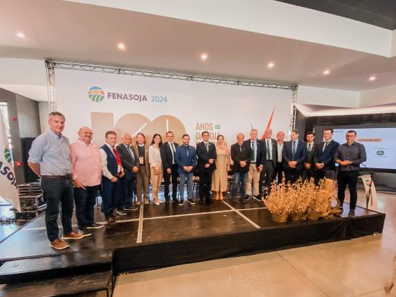 "É um prazer estar aqui na comemoração dos 100 anos da soja. Vida longa à Fenasoja!"