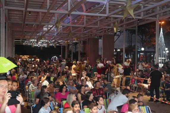 A Rua Coberta ficou lotada de famílias que acompanhadas das crianças assistiram uma emocionante apresentação da Claque Produções de Caxias do Sul.