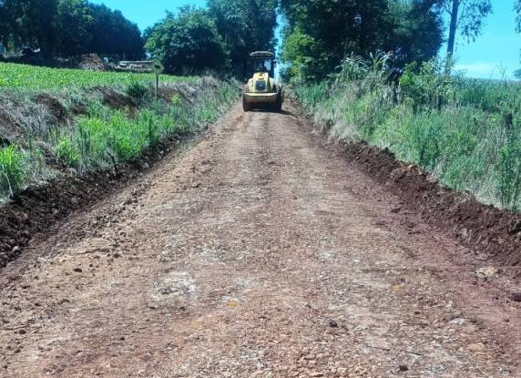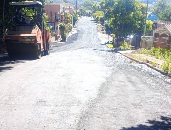 A equipe de pavimentações da SMILT está atuando na Rua Cascata, trecho urbano que está recebendo a melhoria, ligando a área central da cidade com os bairros Cohab/Bela e Colato.