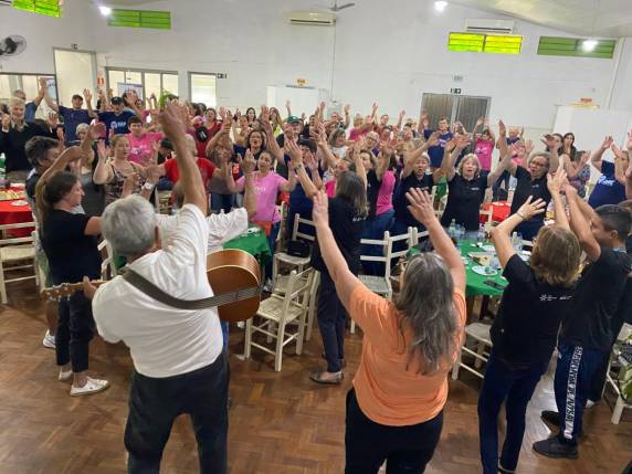 A confraternização foi realizada nesta terça-feira, dia 10, no salão da Associação Regional dos Aposentados e Pensionistas de Santa Rosa, onde 100 pessoas participaram do Café de Natal. O momento foi de agradecer aos parceiros e proporcionar aos usuários um momento natalino. Para animar nossa tarde, contamos com a apresentação do Grupo Cantoterapia da Maturidade Ativa do Sesc, além da apresentação da jornalista e radialista da Rádio Fema, Eli Rodrigues, e do casal Marcelo e Neli.