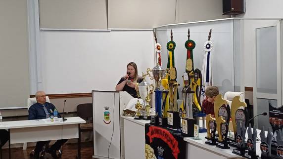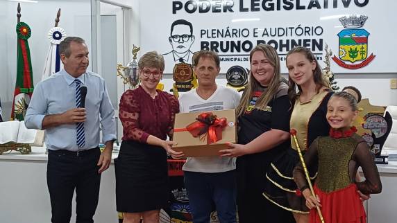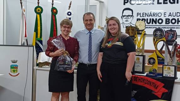 Pelas 18 conquistas obtidas em 4 festivais e campeonatos de bandas e fanfarras durante o ano de 2024, a Banda Municipal de Horizontina, que tem como Regente e professora de música Grazielle Klinger, foi homenageada na nesta segunda-feira, dia 16, em Sessão Ordinária da Câmara Municipal de Horizontina, presidida pelo Vereador Álvaro Callegaro – a última sessão da atual legislatura (18ª) que conferiu à banda por Indicação da Vereadora Ana Denise Strapasson uma Moção de Aplauso.