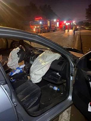 Conforme o Corpo de Bombeiros, o choque entre os veículos ocorreu próximo do trevo de acesso a um posto de combustíveis. A equipe precisou serrar a porta de um dos automóveis para fazer o resgate das vítimas.