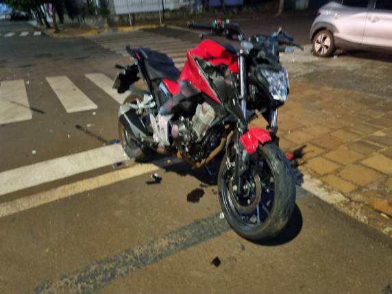 A moto era conduzida na rua Padre Cacique no sentido centro/bairro, e o automóvel na rua São Paulo em direção ao bairro São Francisco quando aconteceu a colisão entre os veículos.
