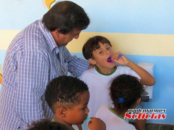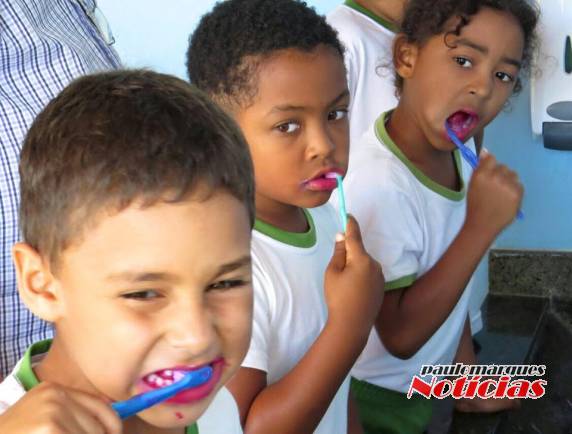 de Educação e da Saúde do município, e pede aos pais que incentive seus filhos a “treinar” em casa a escovação correta que aprenderam