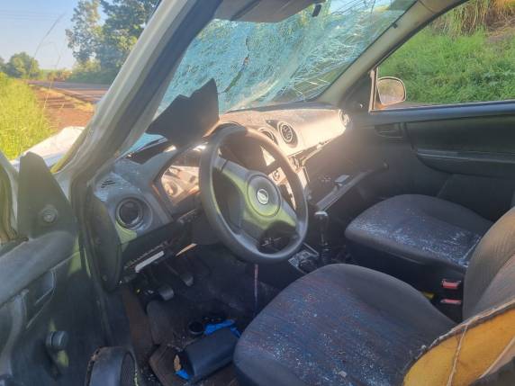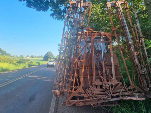 O maquinário agrícola com um pulverizador acoplado e o Celta, eram conduzidos no sentido Independência para Três de Maio, quando aconteceu o acidente.