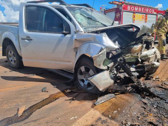 Um grave acidente envolvendo dois veículos, deixou quatro pessoas feridas na tarde desta sexta-feira (14). Um automóvel Gol e uma caminhonete Nissan Frontier, foram envolvidos em uma colisão frontal na BR-472.