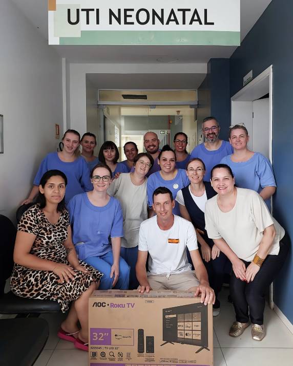 Pensando na melhoria do espaço e como forma de agradecimento pelo atendimento e atenção recebidos, o casal decidiu comprar uma televisão para presentear a instituição e oferecer mais uma opção para as mães que permanecem naquele espaço à espera da alta de seus bebês. A entrega foi marcada pela gratidão da equipe da UTI Neonatal e do Programa Voluntariado.