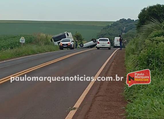 O automóvel Ford Focus, emplacado em Ijuí capotou sobre a pista de rodagem após colidir com um caminhão VW, também emplacado em Ijuí. O caminhão saiu da pista do lado direito.