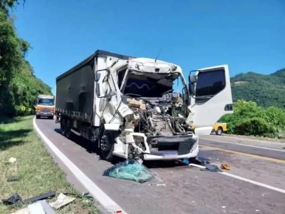 Um caminhoneiro fico preso às ferragens em uma colisão traseira com outro caminhão neste sábado (08) na ERS-122, em Farroupilha. Os veículos faziam o sentido São Vendelino-Farroupilha quando houve o acidente. Equipes do Corpo de Bombeiros retiraram a vítima das ferragens e ela foi encaminhada ao Hospital São Carlos. A Polícia Rodoviária Estadual (PRE) e a CSG também atenderam a ocorrência.