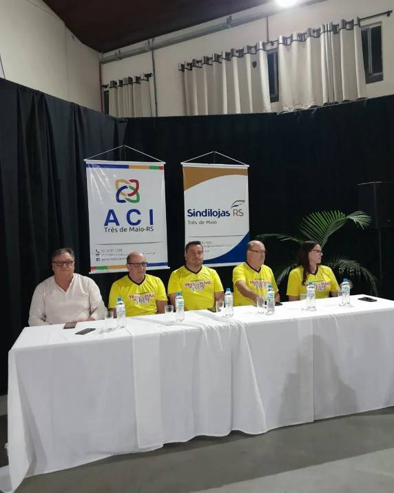 Na noite do evento, a apresentação foi realizada pela Coordenadora do Promocional Três de Maio é Show 2025 e Diretora do Comércio ACI, Ana Maria Baiotto e tambem pelo Vice-coordenador do Promocional Três de Maio é Show 2025 e Conselho Fiscal Suplente ACI, Davi Antônio de Magalhães.