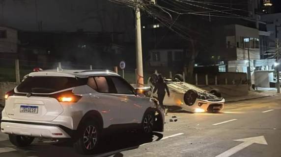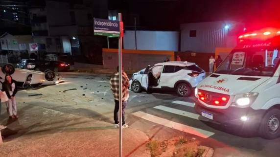 Na noite desta sexta-feira (04), uma colisão com capotamento foi registrada no cruzamento das ruas Antônio Araújo e Independência, no bairro Vila Popular, em Passo Fundo.