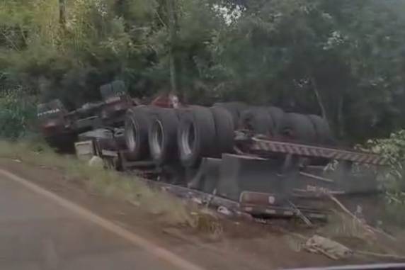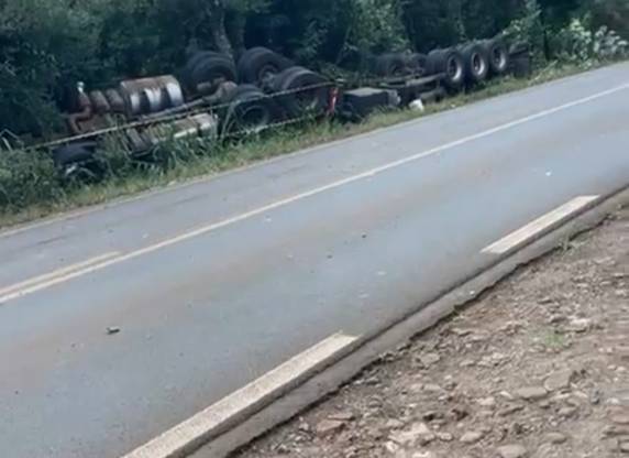 O veículo de carga emplacado em Gravataí, era conduzido no sentido Três de Maio para Horizontina, e saiu da pista em uma curva da rodovia próximo a localidade do Km 16.