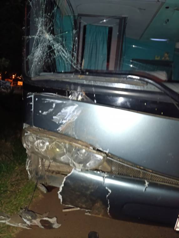 Segundo informações colhidas no local do acidente, um veiculo Gol, com placas de Guarani das Missões, deslocava no sentido Guarani Cerro Largo, quando teria parado na pista de rolamento, sendo colhido por önibus que transportava universitários, que também transitava no mesmo sentido