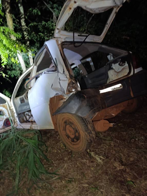 Com o impacto, o veículo foi jogado para fora da pista, junto a um barranco.