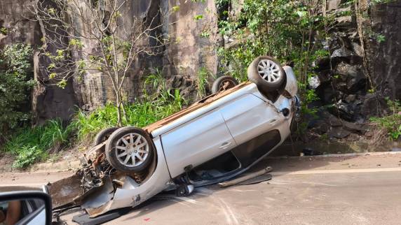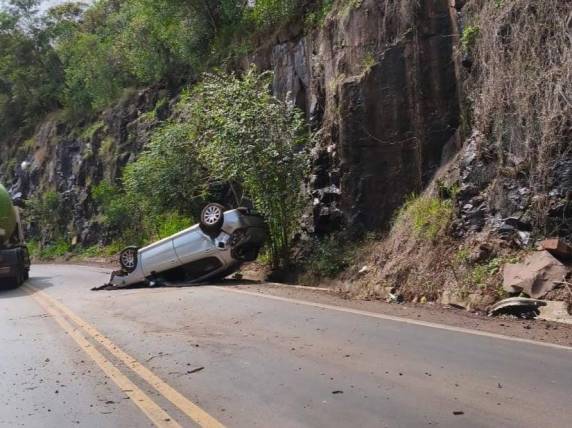 Um capotamento ocorreu por volta das 10h45 desta quarta-feira (16), na RSC-472 em Três Passos, na chamada Serrinha dos Paredões de Pedra, sentido a Tenente Portela.