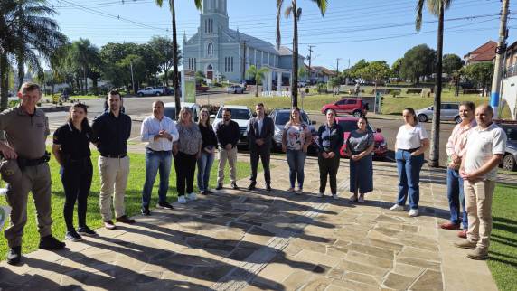 O evento, realizado em frente à Prefeitura Municipal, contou com a presença de diversas autoridades locais, incluindo o Prefeito Joãozinho Sehnem, Juíza de Direito e Diretora do Fórum da Comarca de Três de Maio, Dra. Vanessa Teruya Bini Mendes, a Vice-Prefeita Clarice Schmitt, o Secretário de Gestão Fábio Kunrath, a Vereadora Berenice Classmann e o Vereador Antônio Mota. Também estiveram presentes o Tenente da Brigada Militar Jair Spohr, o Delegado de Polícia, Dr. Marcelo Luiz Gasparetto, e a Escrivã de Polícia Chanine Corrêa Botton, o Procurador e o Assessor Jurídico, Dr. Klaus Quanz Egewart e Dr. Cláudio Gilberto Kowalski, além de outros Secretários municipais que se uniram à causa.