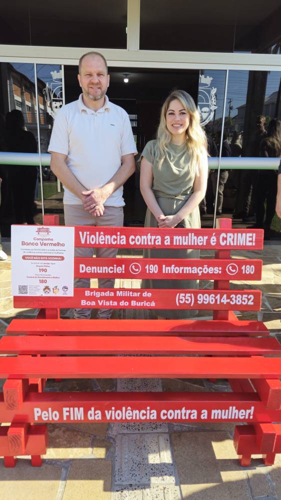 A instalação de um banco na coloração vermelha em frente à Prefeitura Municipal de Boa Vista do Buricá, remete a uma reflexão ao grande número de feminicídios que ocorrem no Brasil e reafirmar o compromisso da Administração Municipal de Boa Vista do Buricá e da comunidade em enfrentar essa grave questão. Ademais, este banco além de chamar a atenção para a problemática da violência contra as mulheres, também funciona como um ponto de apoio e de informação. Neste banco, foram divulgados números de telefones que podem ser acionados para denúncias, reforçando a importância de dar voz às vítimas e incentivar a população a agir em prol da mudança.