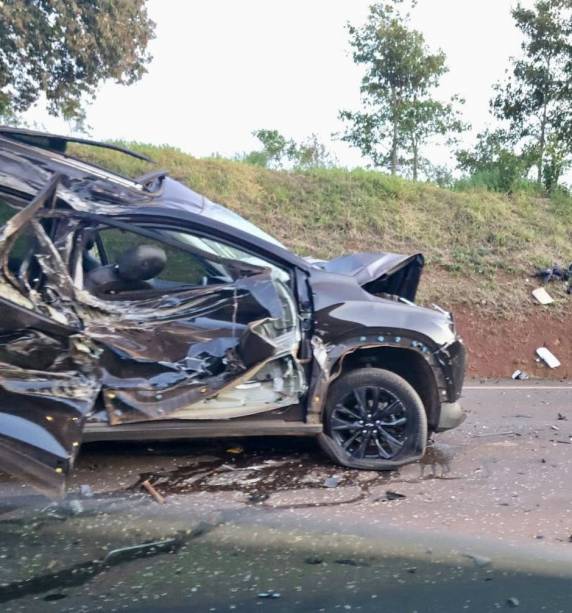 No local, um cenário de destruição, devido às grandes avarias em dua caminhonetas, uama T-Cross e uma Tracker. Com a força do impacto o veículo T-Cross capotou na pista de rolamento.