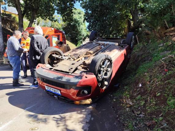 Uma colisão envolvendo um Fiat Mobi e um caminhão resultou em capotamento e uma pessoa ferida, por volta das 12h30 desta segunda-feira (28), no cruzamento da rua Francisco Alves com Avenida Sete de Setembro.
