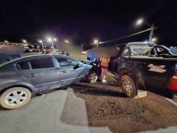 Um acidente de trânsito envolvendo quatro veículos foi registrado no início da noite desta quarta-feira (30) na RS-155, em frente à estação rodoviária de Ijuí. A colisão envolveu uma caminhonete Toyota Hilux, um GM Vectra, um VW Fox e um GM Corsa.