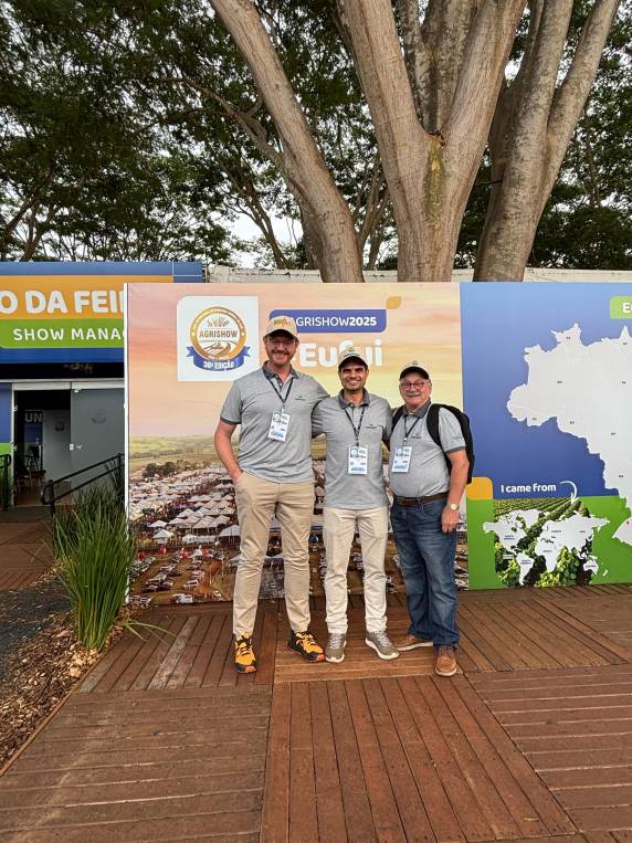 A participação da Comissão Central da Fenasoja na Agrishow, maior feira da América Latina voltada ao agronegócio, alçou importantes resultados na aproximação de parcerias de nível nacional e internacional, além de inspirar novidades para a feira gaúcha. A comitiva formada pelo presidente, Marcos Eduardo Servat, vice-presidente, Fabiano Soltis, e diretor comercial, Cléo Rockenbach, cumpriu agenda no evento realizado em Ribeirão Preto, São Paulo, de 28 a 30 de abril.