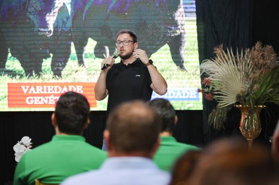 Pela manhã, a Nutrepampa, em parceria com a Associação Brasileira de Angus, promoveu a palestra Segredos da Pecuária Rentável, na manhã desta quarta-feira, 7 de maio, na Expofeira.